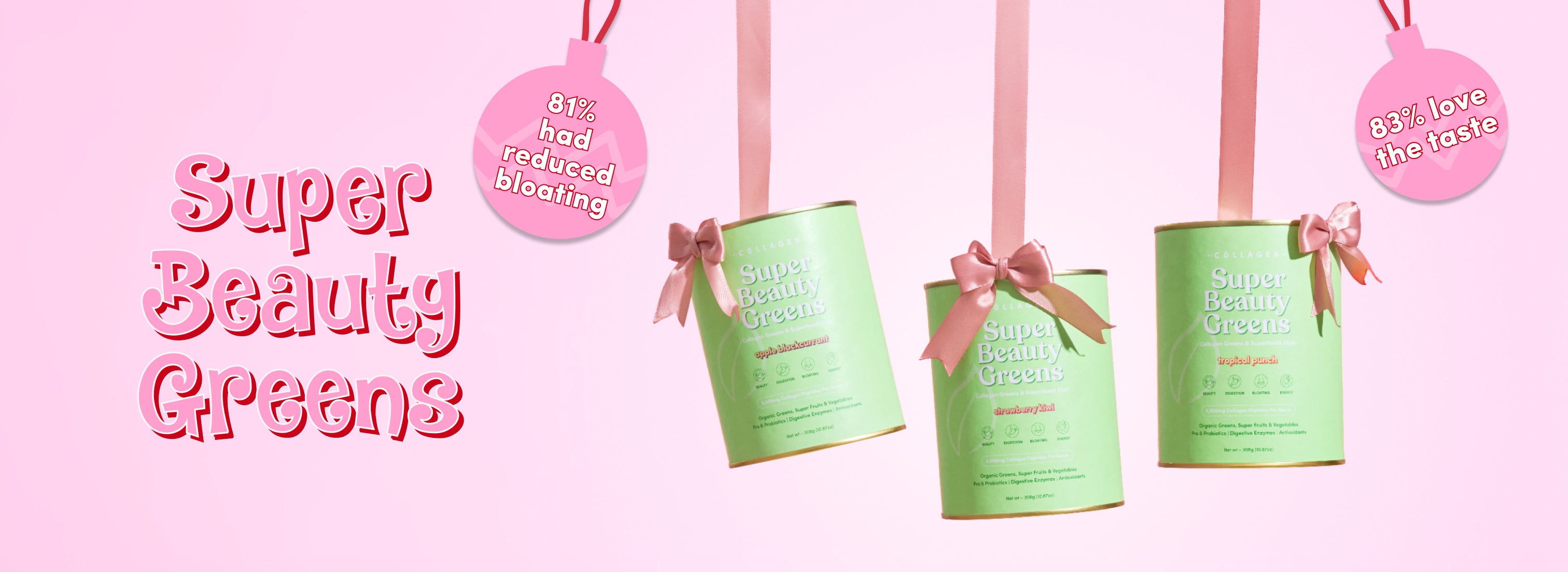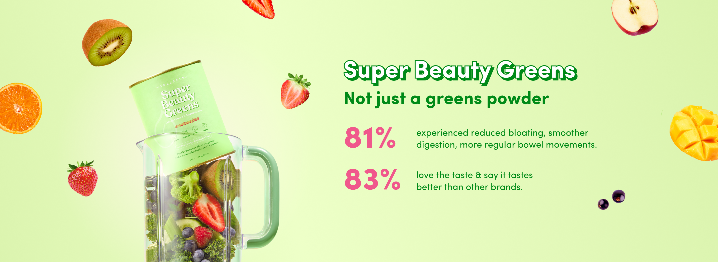 Our collagen greens are fruity and refreshing with NO grassy aftertaste!