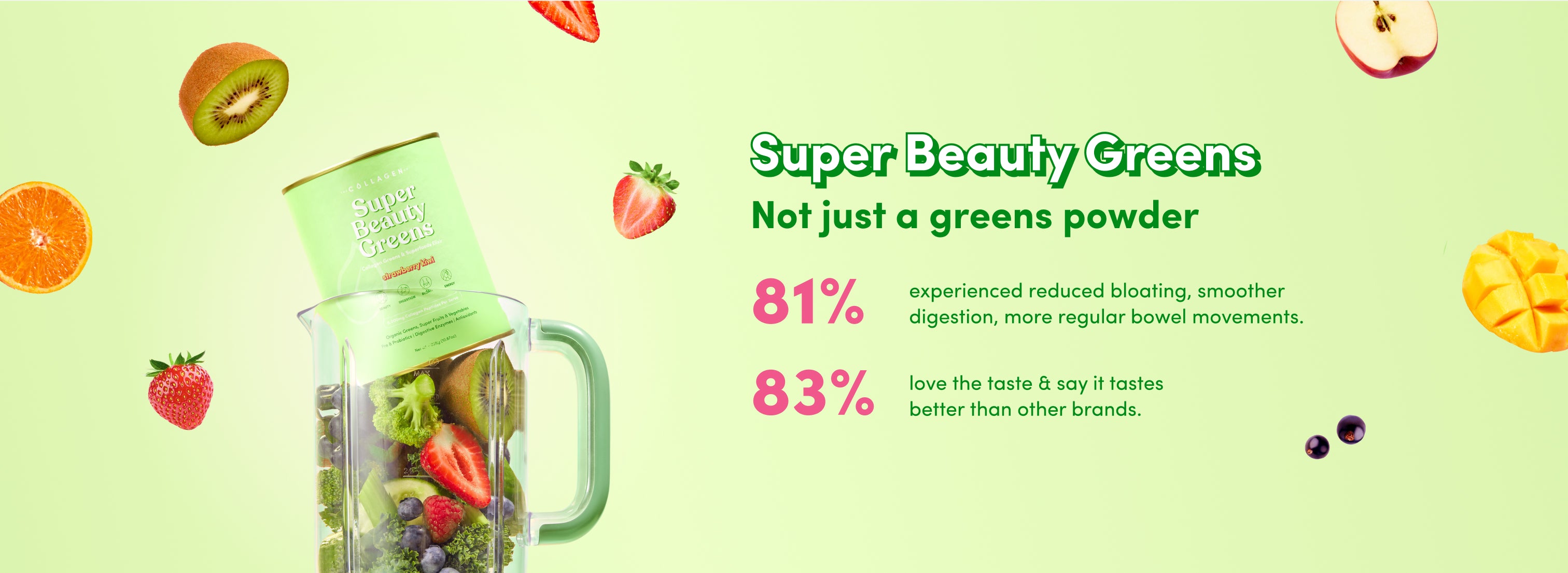 Think of them as the overachieving sibling—delivering all the essential nutrients you'd expect from a multivitamin, but going above and beyond with probiotics, collagen, and additional superfoods to support gut health, skin vitality, and overall wellness! Try our greens powder today.