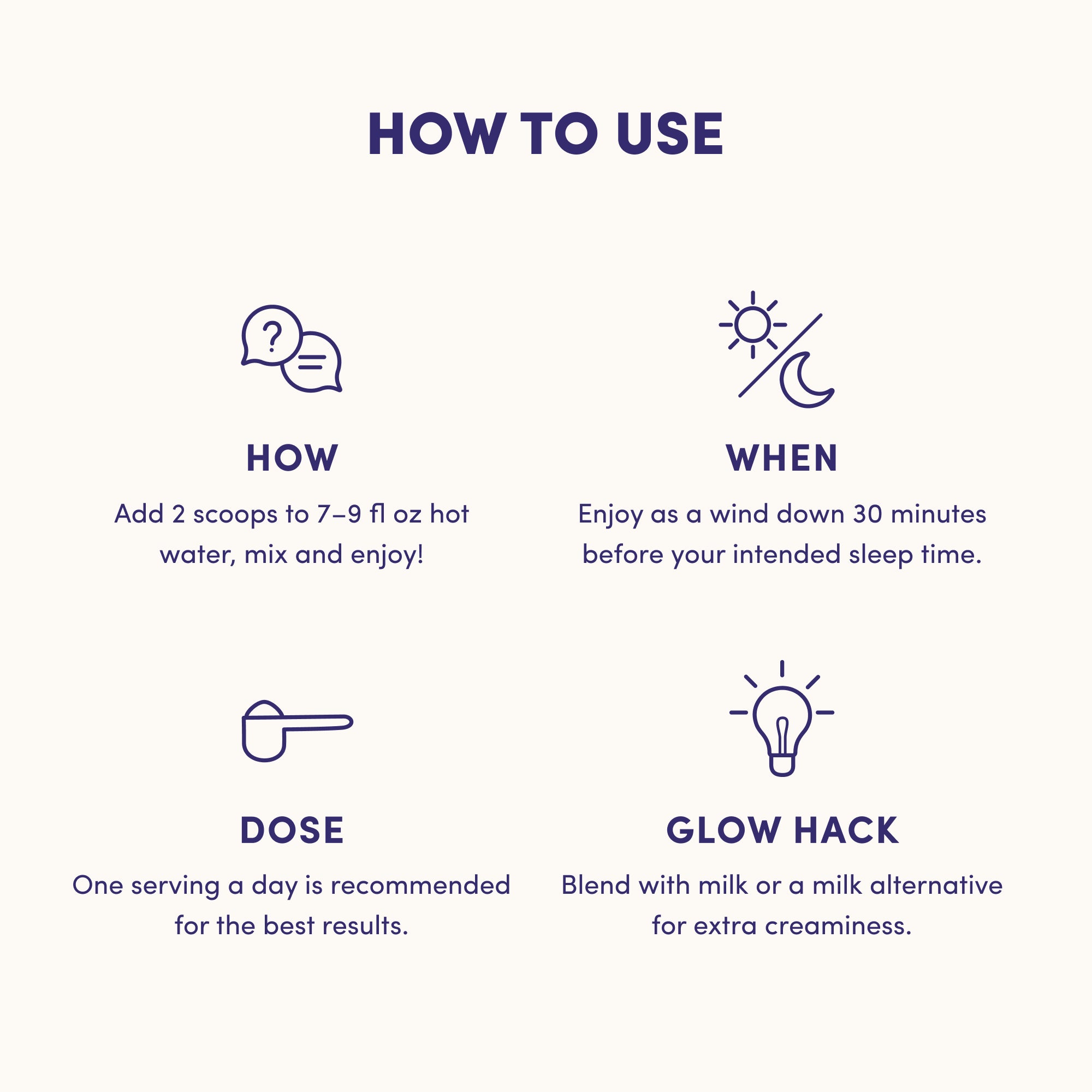 For best results, we recommend consuming approximately 30 minutes before bed. A daily dose of 1-2 servings should not exceed this recommendation. You are not limited to bedtime. Enjoy this beverage at any time of the day to de-stress and relax.