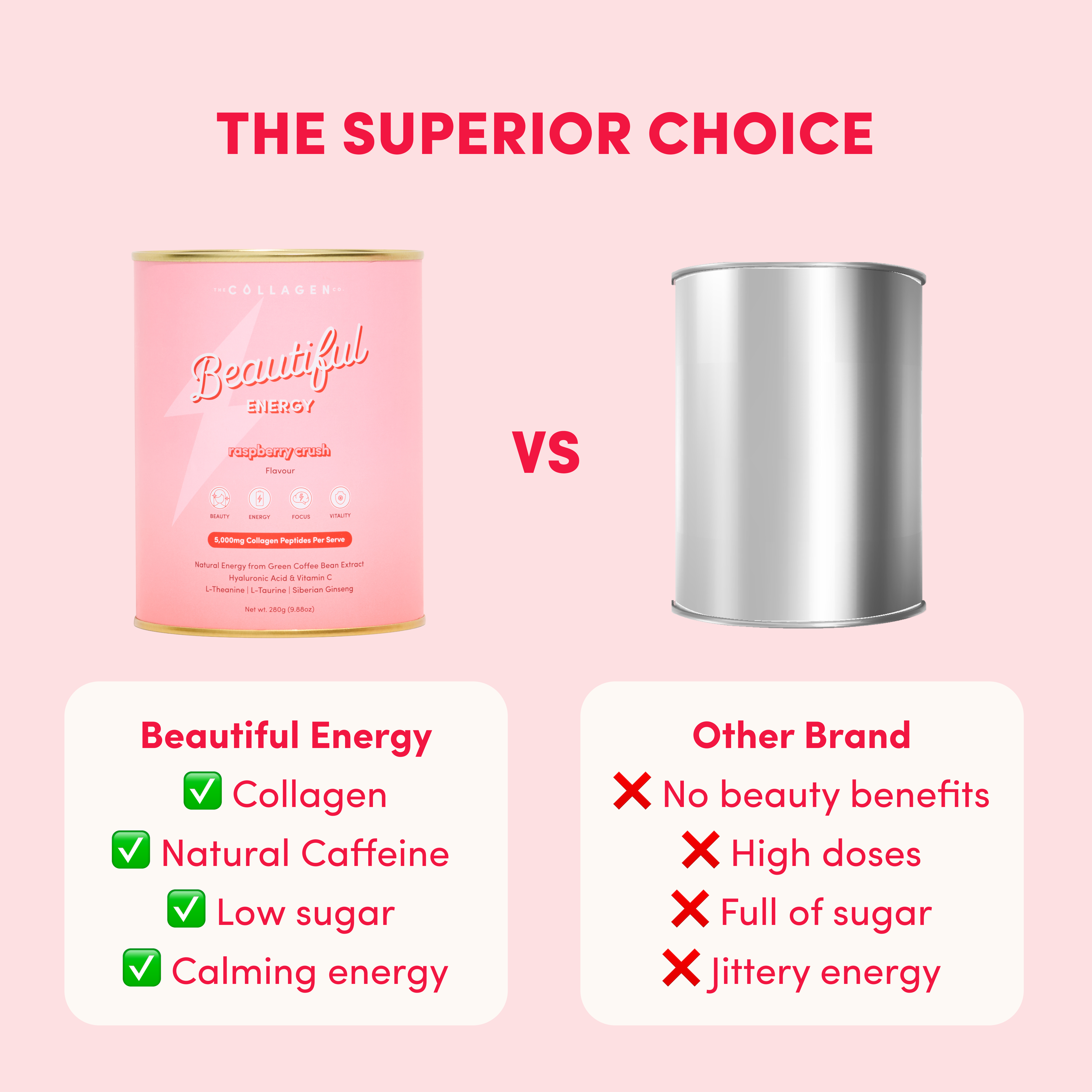 Unlike conventional energy drinks that rely on synthetic caffeine and sugar, Beautiful Energy uses:
